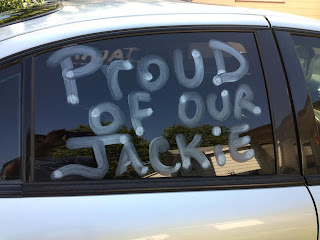 My mom was a tad excited about my graduation. Here's her car.